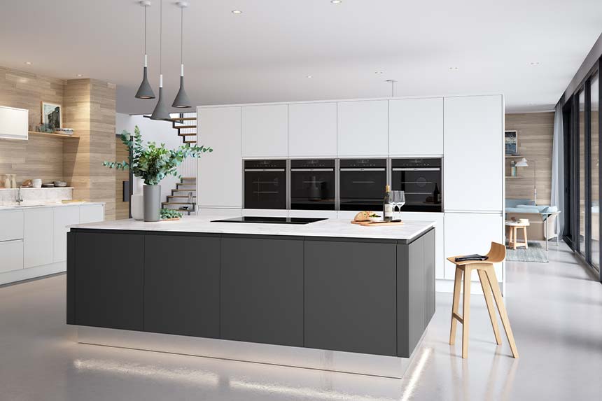 A matt kitchen finish provides a smooth texture to kitchen units and surfaces but without the shine and deep reflections featured in high gloss kitchen finishes. Matt finishes can successfully create subtle, understated kitchen designs, achieving a true sense of refined luxury. Matt kitchens are easy to maintain, extremely durable and can also be more resistant to fingerprints and marks. As a result of these factors, they are a very popular choice and Kitchen Warehouse Winchester provide a staggering range of styles and colours in a matt finish.
