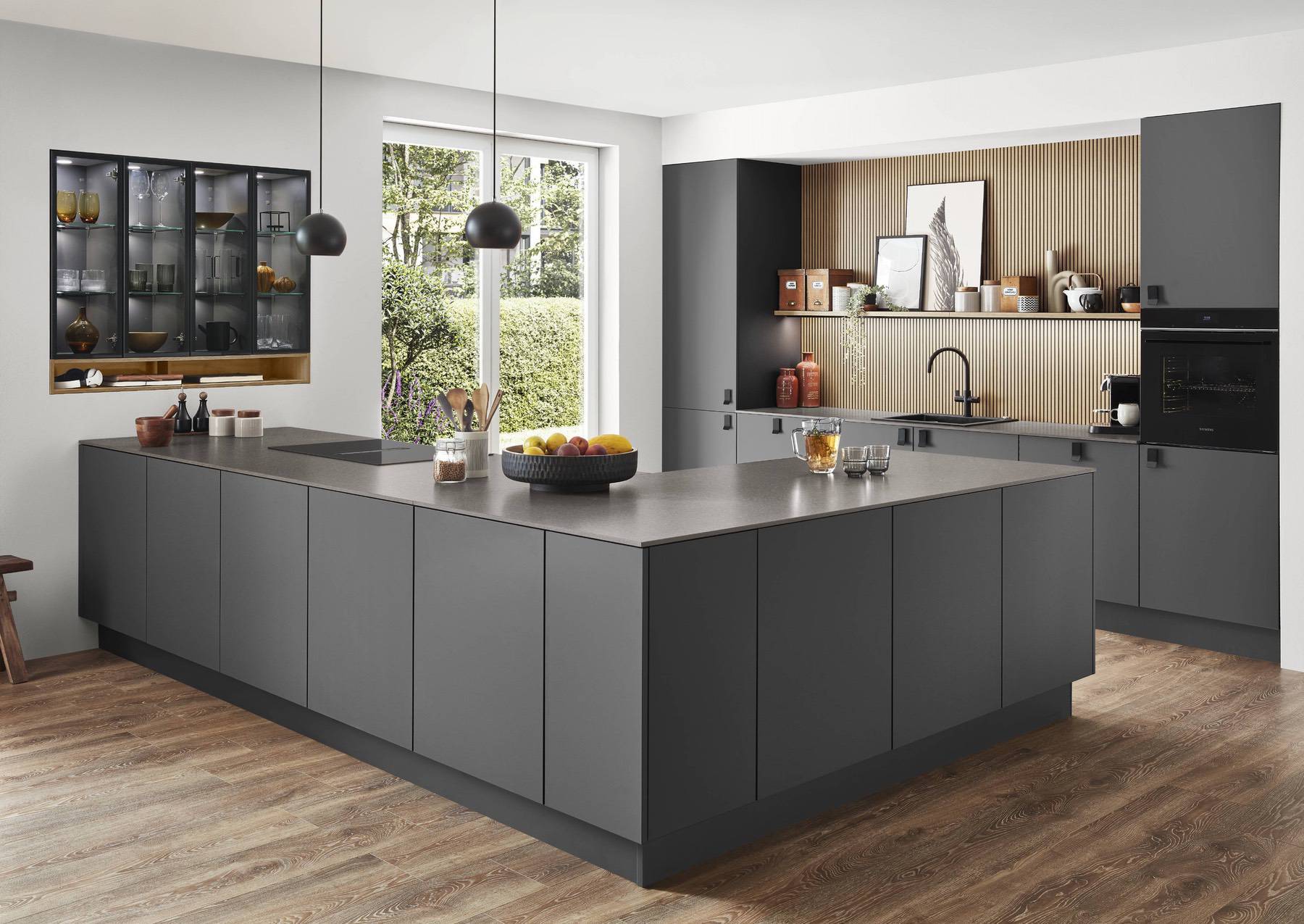 The most exclusive of all our matt kitchen finishes, matt design glass is a range truly for the modern kitchen connoisseur! Our matt glass kitchens are available in black, white, cream, blackberry, silver-grey or grey-green, and the rich and consistent quality of each glass colour tone introduces a wealth of sophistication into any kitchen design. The glass tones lend themselves effectively in conjunction with other luxurious kitchen finishes such as gloss, lacquer, veneers or stainless steel and this makes it a popular choice with architects and interior designers for use in flagship projects and particularly for creating feature wall cabinets, glass kitchen islands etc.